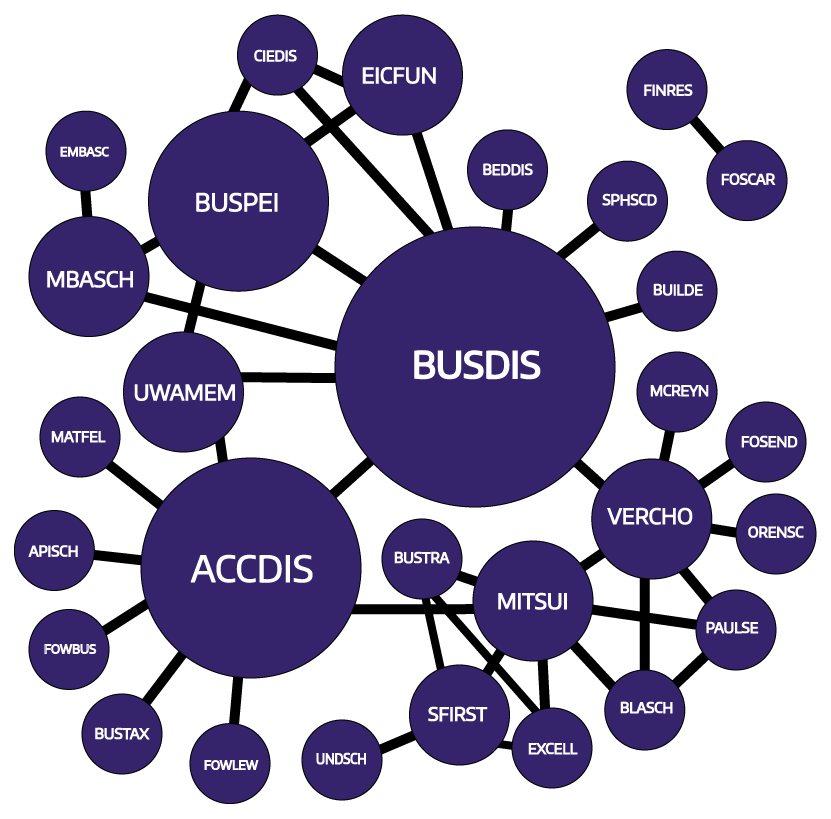 I needed a graph to describe which funds were being donated to at the same time, so I came up with this web and circles design. The size of the circles is relative to how many times the fund was donated to, rather than the sum of the donations, and each line connects two funds that were donated to in the same transaction.